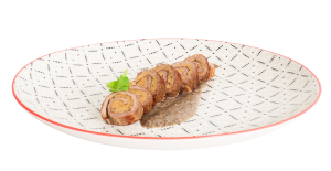 ROULADE FILLED WITH PORCINI SAUCE ON A BED OF TRUFFLE CREAM