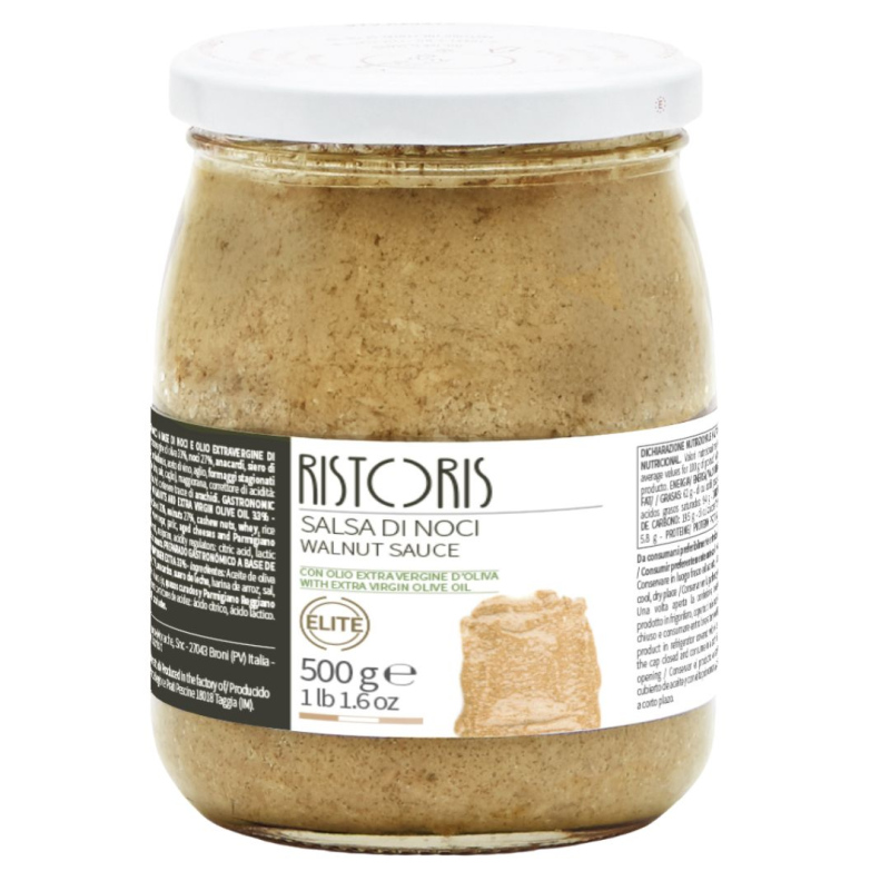 Gustosa ricetta tipica della tradizione ligure, preparata con noci pregiate accuratamente pelate. Questa salsa, dal colore perlato e dal gusto inconfondibile di noci saporite, è il condimento ideale per pasta, pizze gourmet e un topping sfizioso per tartine e antipasti.